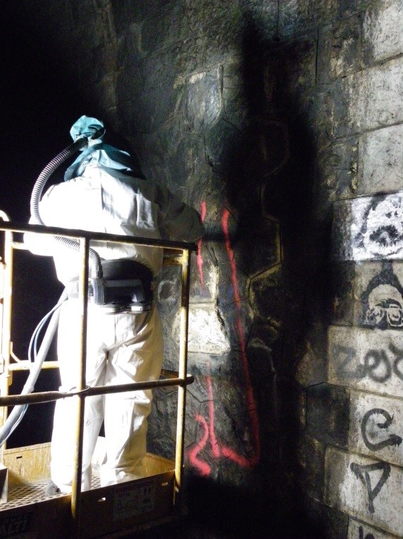 Nous nettoyons et décapons le mobilier urbain, mais aussi les œuvres d’art, monuments historiques et bâtiments de France. Notre société est très présente dans la « lutte » anti-graffitis.